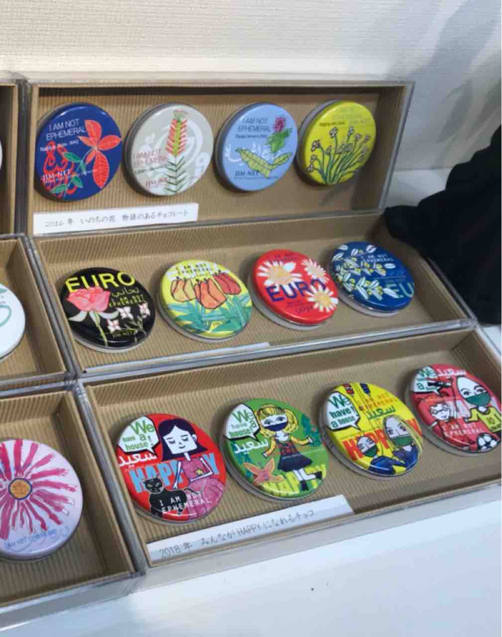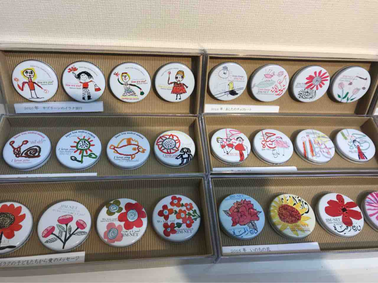 チョコのケースのデザインに使われているイラクの子供達の絵の展示、