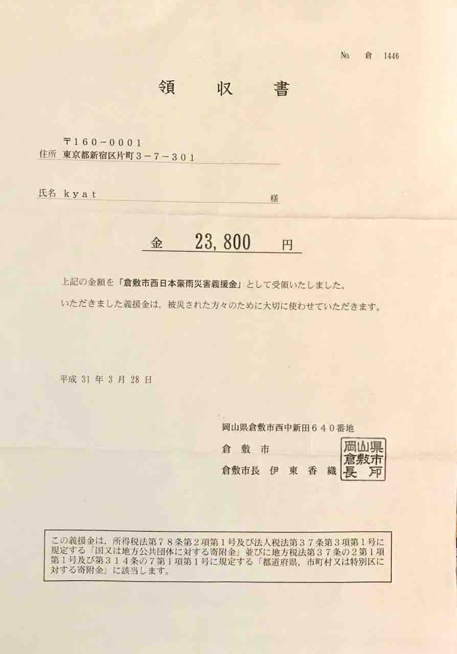 昨年7月の西日本豪雨災害義援金ご協力ありがとうございました!
