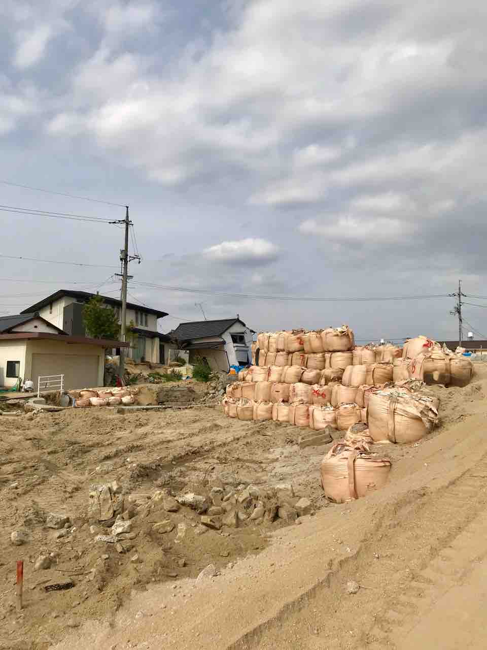 近くの家は、まだ傾いたままでした。